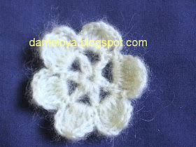 Şalın arasına örülen motifler altı zincir yuvarlak yap beş zincir üçlü trabzandan dört tane doldur beş zincir çekip batılıyor daha sonra bu motifler firkete örgü ile aralara yedi zincir çekilip motiflerde ekleniyor