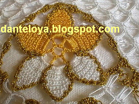 Çiçeğin yapılışı 12 zincir birleştir trabzan yapıp beş zincir çek bu şekilde altı tane yap bu boşluklara on tane trabzan doldur daha sonra tepelerine sık iğne yap dönerek ör her sırada yandan eksilt bir tane kalınca aşağıya doğru sık iğne yapıp iniyoruz çiçeğin bir yaprağı tamamlandı diğerlerinide aynı şekilde yapın daha sonra simli ip ile kenarına zincir çekerek ör