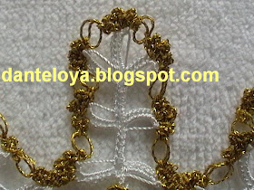 Çiçeklerin üst kısmına beyaz ip ile başlanıyor sadece örümcek yapıp sık iğne dolduruluyor sonra dört zincir yine örümcek sıralar tamamlanınca tepe kısmında aralara zincir çekmeyip üç tana öümcek ve sık iğne yapılıyor iniş kısmında ise zincir yapılan yerler doldurularak yine örümcek sık iğne işlemi yapılıyor